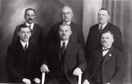 Siedzą (od lewej): ławnik Jan Skocza, naczelnik gminy Jan Wieczorek, ławnik Paweł Sojka. Stoją ławnicy (od lewej): Gustaw Pisarzowski, Mikołaj Kściuk, Marcin Pisarzowski. Skan z publikacji: L. Musioł, Tychy. Monografia historyczna, Tychy 1939 (reprint 1993), s. 100.