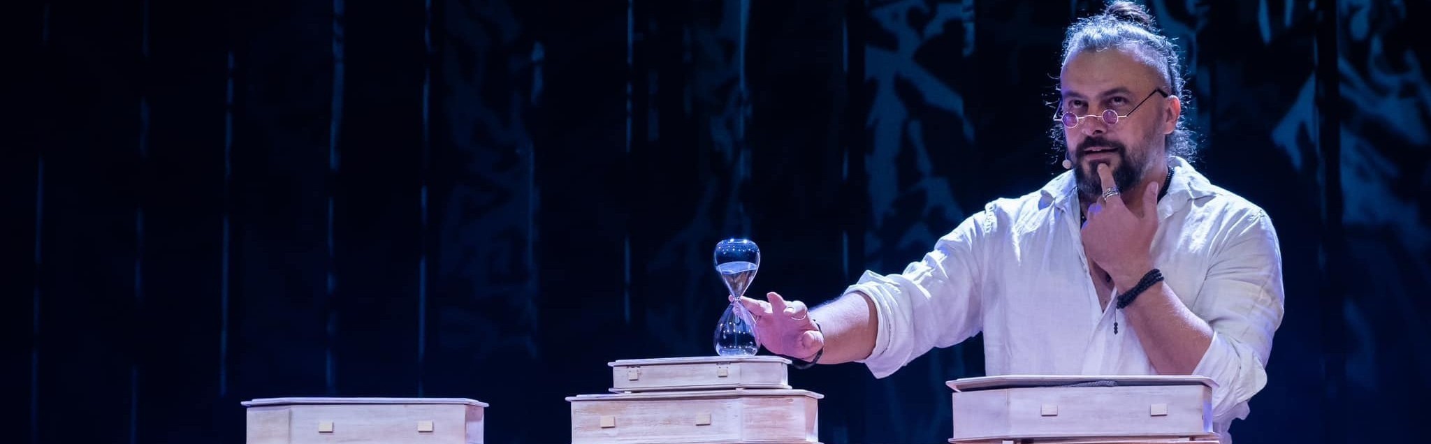 Inspirowany XVIII-wiecznymi zjadaczami grzechów, w sposób zabawny, choć czasem całkiem serio ocierając się o ezoteryczne przymrużenie oka, spektakl daje szansę widzowi na zmianę narracji codziennego życia. Rzeczy poważne nie zawsze muszą być doniosłe, a te doniosłe nie mogą przecież przez cały czas być smutne. Tak, jest trumna, ale jest i miejsce na śmiech i całkiem spora szansa na to, że w trakcie przyplącze się jakaś zapomniana prawda… i odrobina mądrości. Nade wszystko jest to okazja do spotkania – w tej skleconej in promptu wspólnocie – i szansa na rzucenie na pożarcie okruszka smutku i tęsknoty za tymi, którzy odchodzą.